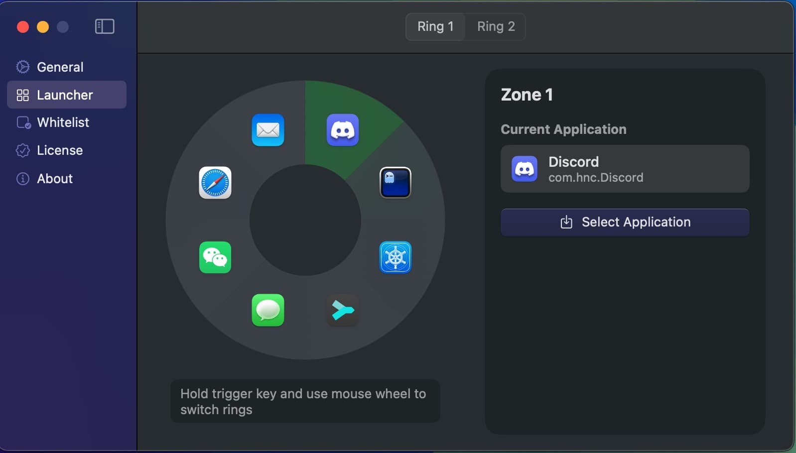 OrbitRing is a macOS app launcher that allows you to quickly access your favorite applications. By placing your mouse at the center, a circular orbit with app shortcuts appears, letting you select and launch apps in a seamless and intuitive way.
